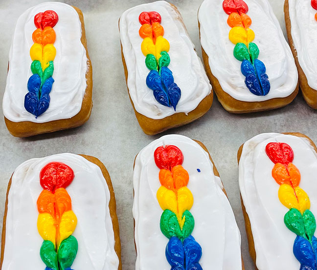 The bakery offers freshly made donuts, cinnamon rolls, croissants, apple fritters, and a variety of fresh buns and breads, all made daily. Be sure to check out our seasonal pies and our exciting Sunday Rotation, featuring a new donut every week. Plan your next event with us by exploring our full catering menu!